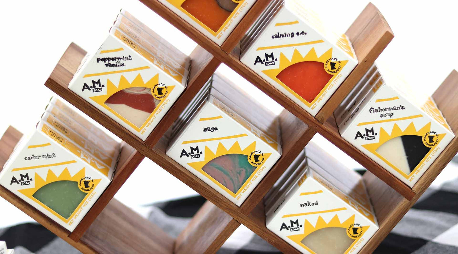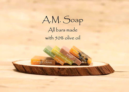 AM SOAPS are highly emollient with four percent extra oil and the natural glycerin (created by the soap making process) in each bar to moisturize and condition your skin. Handmade in Minnesota to smell great and look great too.