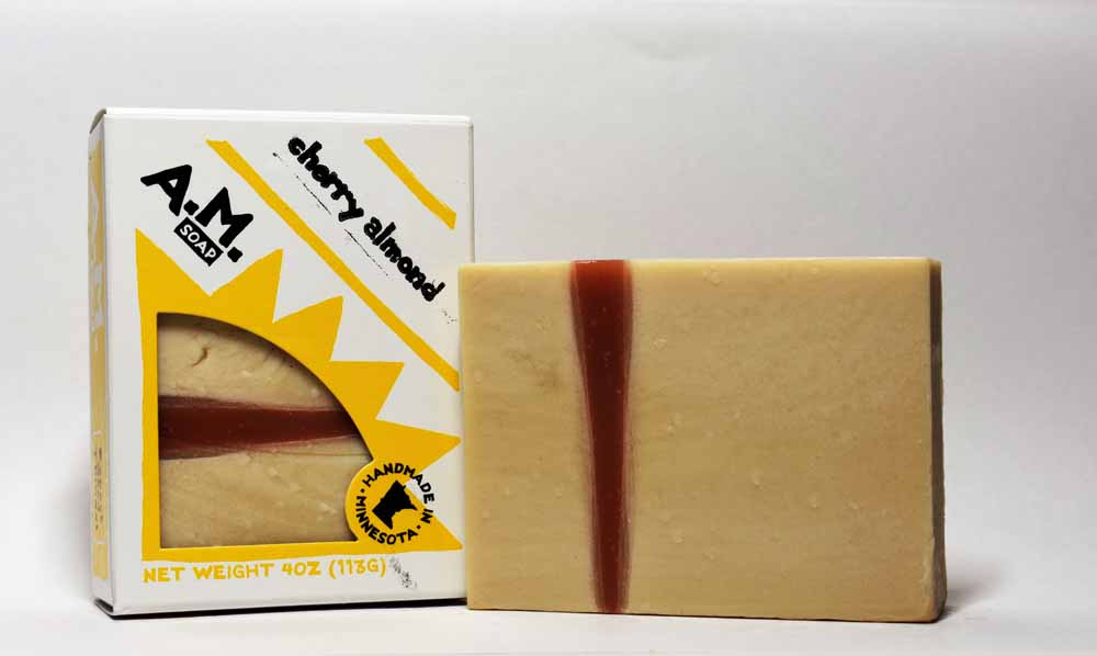 cold-process soap created by hand in small batches using olive oil, distilled water, coconut oil, palm kernel oil, sunflower oil, sodium hydroxide, castor oil, fragrance oil and an array of safe pigments or dye.