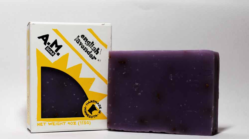 cold-process soap created by hand in small batches using olive oil, distilled water, coconut oil, palm kernel oil, sunflower oil, sodium hydroxide, castor oil, essential oil and an array of safe pigments or dye.