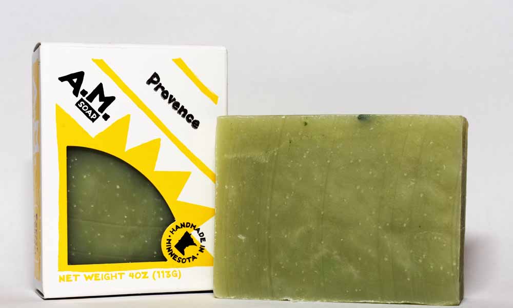 cold-process soap created by hand in small batches using olive oil, distilled water, coconut oil, palm kernel oil, sunflower oil, sodium hydroxide, castor oil, fragrance oil and an array of safe pigments or dye.